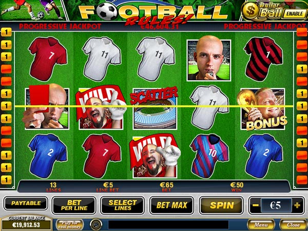 Since watching football is such a popular past time activity, PlayTech decided to combine football with another popular past time activity. They created Football Rules! Slots, which is an online bonus video slots game. Football Rules! Slots is a fast paced online slots game that offers big prizes and a great playing experience.