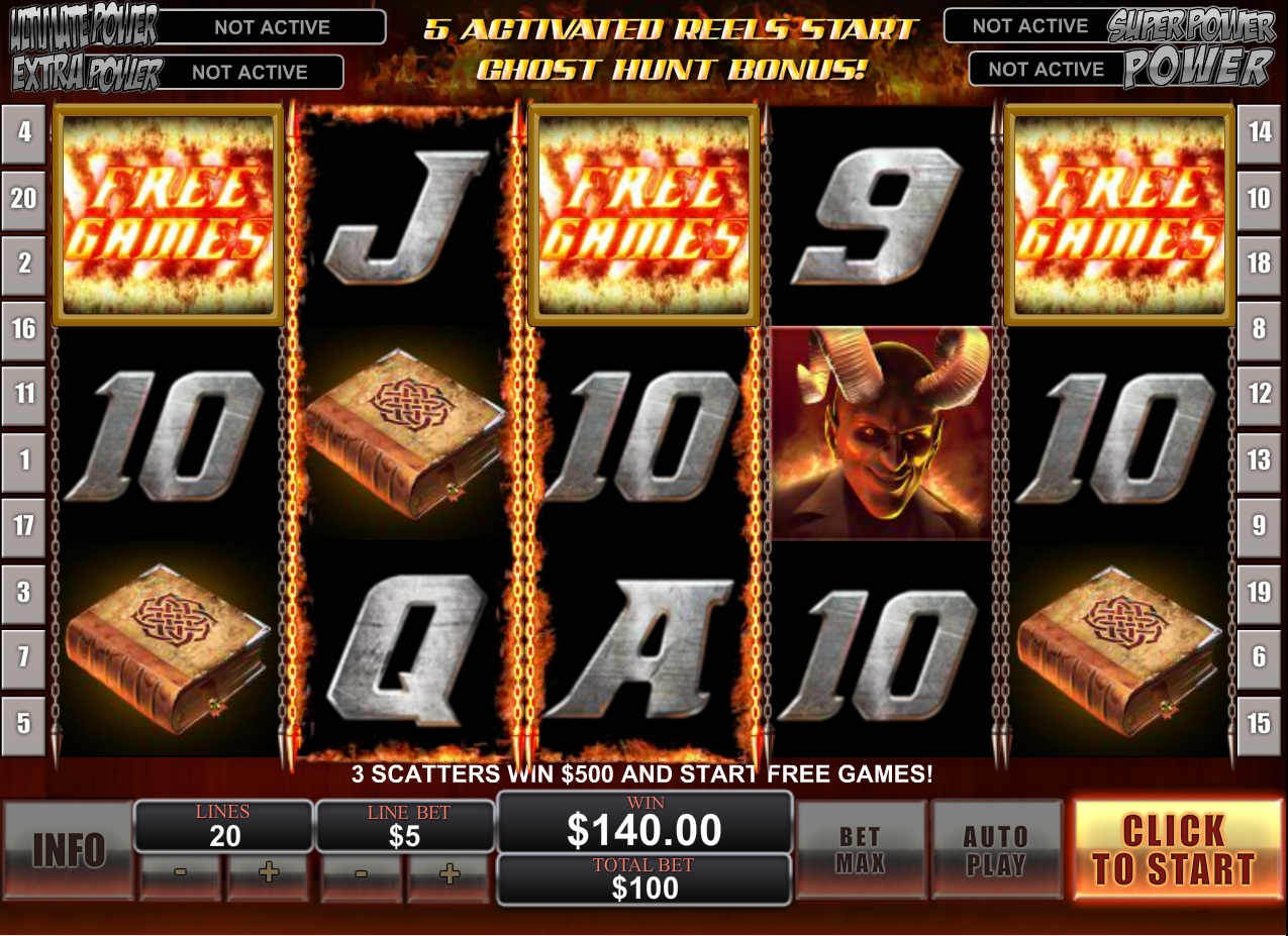 Three or more Ghost Rider logos or scatter symbols in any position will trigger the Free Games feature and you will receive 10 free spins with a multiplier of 3x. If you get three or more scatters during the free games feature, you will get more free spins. Additionally, during this feature, the Ghost Rider wild symbol appears as an expanding wild and you can get up to 3 of them per free spin.